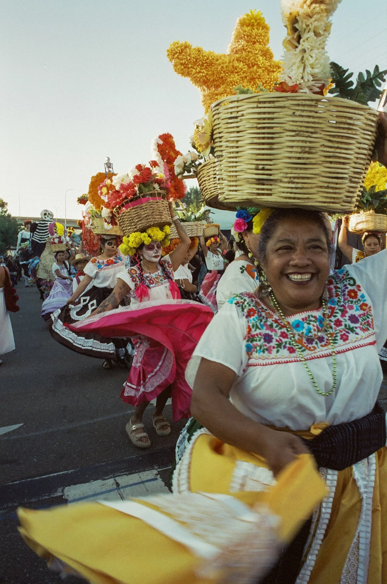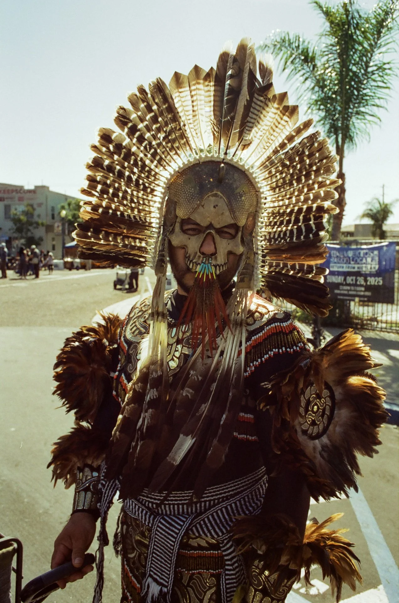 I must’ve walked up and down the street ten times, and each pass felt completely different. The energy kept shifting from the sound of drums and laughter to the smell of copal and food, to quiet moments of people standing in front of altars. Everywhere I looked, there was beauty! Artists painting, Aztecas moving with purpose, elders blessing the crowd. It was emotional, grounding, and humbling all at once. I wanted my photos to reflect not just what it looked like, but what it felt like to be there.