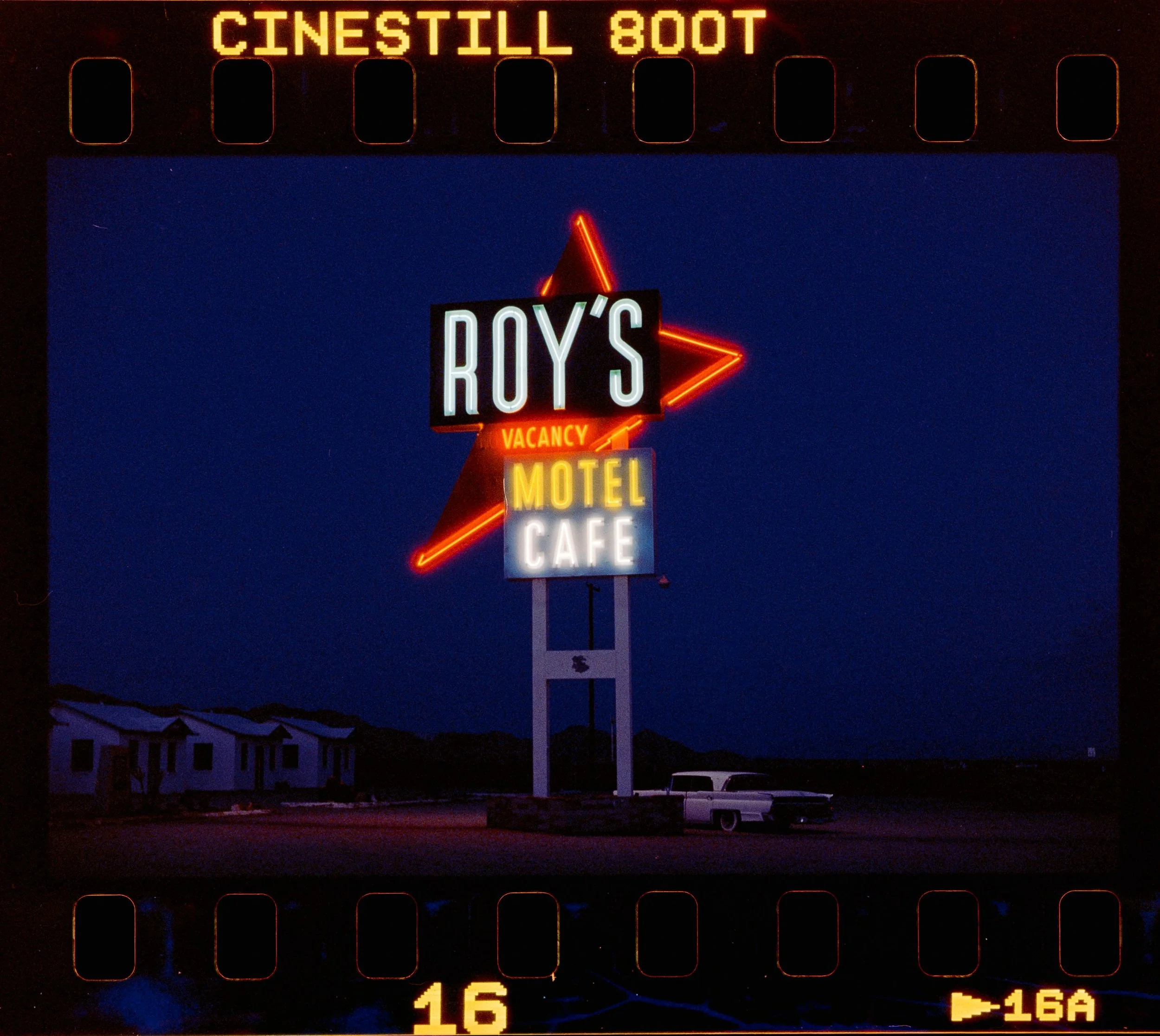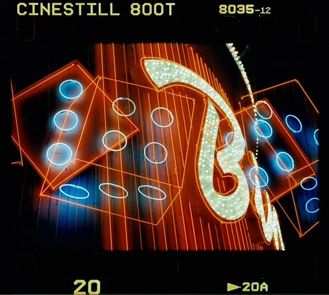Film photographer Sarah Robles works in the dimming visual language of neon —a technology first patented in 1910 by French engineer Georges Claude, and widely adopted by American consumers in the booming post-WW2 economy. Neon signage would play a key role in roadside architecture, diners, motels, movie palaces and entertainment districts throughout the 1950s — mainly in Las Vegas and along Route 66. Along with its luminous glow, it carried with it a promise of optimism and spectacle amidst the car-driven nightlife that defined the Golden Age of consumerism in the U.S.